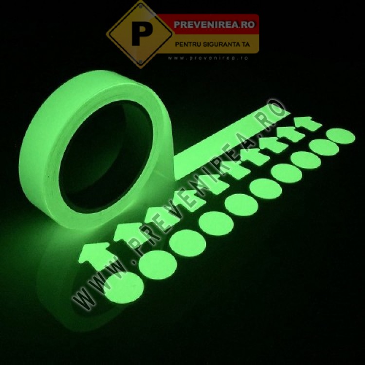 Semnalizare fotoluminiscentă profesională – benzi, semne, săgeți și stickere pentru evacuare și siguranță