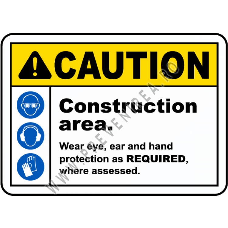 Indicator de Avertisment Zonă de Construcții – Protecție Ochi și Mâini, Siguranță la Locul de Muncă
