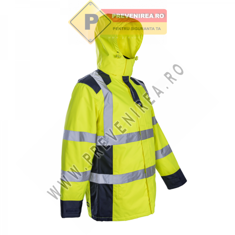JACHETA DE IARNA REFLECTORIZANTA SOKOBIE .CARACTERISTICI PRODUS- Gluga ascunsa in guler;- Fermoar in doua sensuri, acoperit;- Mansete reglabile cu velcro + manseta interioara anti-vant;- 2 buzunare laterale cu fermoar, 1 buzunar Napoleon;- 2 buzunare interioare, 1 bucla interioara pentru casti;- Fermoare + elemente de fixare pentru atasarea jachetei Kazan si Kazan Softshell;Material:- Exterior - Oxford: 100% poliester tesatura ripstop acoperit cu PU - 300D - rezistenta la apa: 3000 mm;- Captuseala inovatoare Sorona, extra usoara si calda: 100% poliester - 140 g / m2;STANDARDE JACHETA DE IARNA REFLECTORIZANTA SOKOBIE COVERGUARDEN 14058: 2017 4.2.xx;EN ISO 20471 CL. 3;EN 343: 2019 4.1.xxTe-ar mai putea interesa și