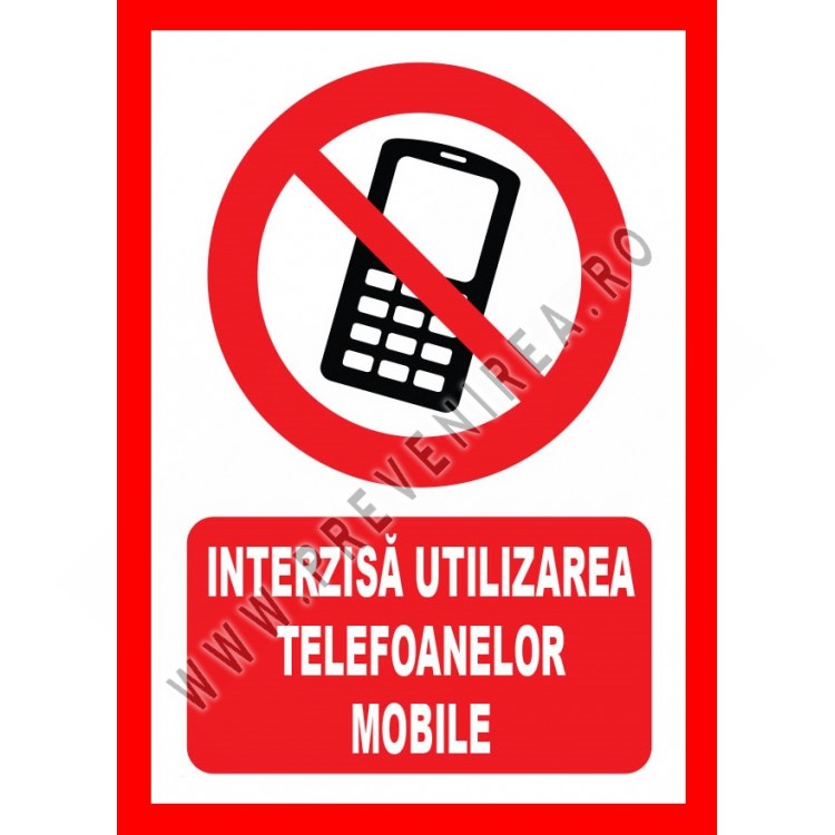Etichete: Placuta interzisa utilizarea telefoanelor mobile, Indicator autocolant - Interzisa utilizarea telefoanelor mobile, 20x26 cm. 8, 00 Lei. Adauga in Cos. Indicator accesul interzis persoanelor neautorizat, Indicator interzisa utilizarea telefoanelor mobile. Vă putem oferi alte dimensiuni, materiale sau modele separat la cerere.