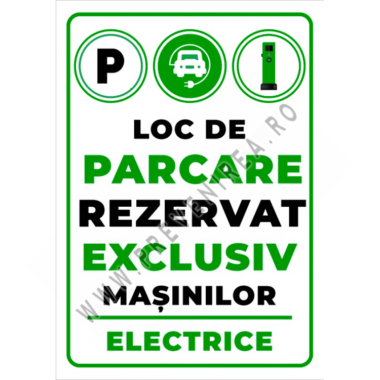 Placuta pentru loc de parcare rezervat exclusiv masinilor electrice