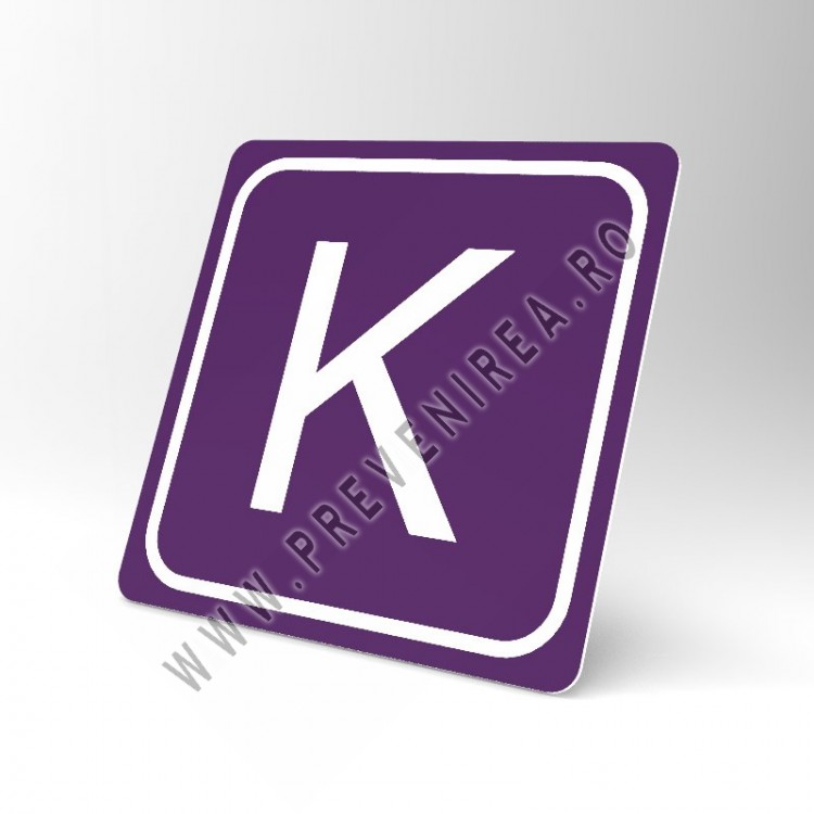 Etichete: Placuta violet K, Placuta violet K pentru protectia muncii, Placuta violet K pentrru rafturi metalice, Placuta violet K pentru garduri, Placuta violet K pentru porti, Placuta violet K pentru case, Placuta violet K pentru blocuri, Placuta violet K pentru marcaje rutiere, Placuta violet K personalizate, prevenirea stingerea incendiilor, personalizare,