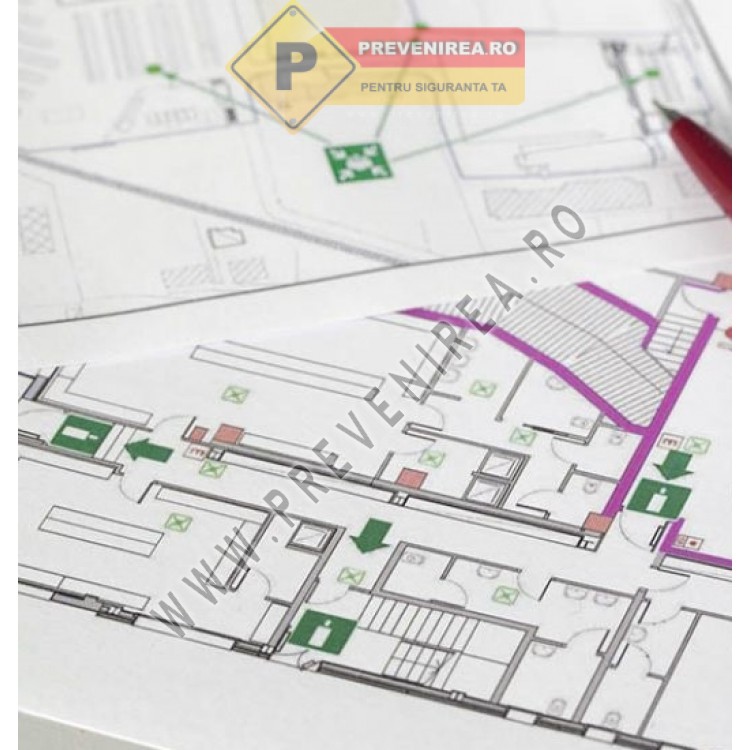 Planul de evacuare in caz de incendiu cuprinde schite intocmite pentru fiecare nivel in care este specificat numarul nivelului si numarul maxim de persoane, care se pot afla la un moment dat pe acel nivel. Se vor stabili, in mod obligatoriu, traseele pe care se va face evacuarea si se vor diferentia caile de evacuare a materialelor, cu scopul precis de a nu ingreuna interventia pompie