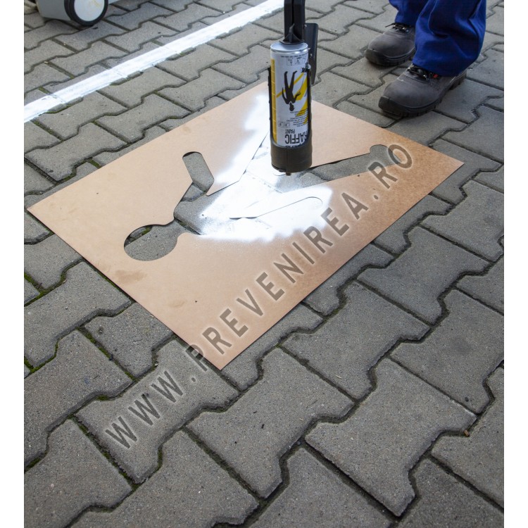 Putem picta șabloane în aproape orice formă sau logo pe asfalt sau beton