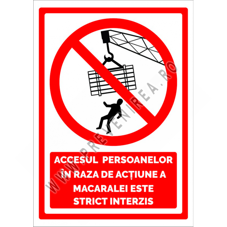Etichete: Semn accesul persoanelor in raza de actiune a macaralei este strict interzis, Indicator pentru accesul persoanelor in raza de actiune a macaralei este strict interzis. Vă putem oferi alte dimensiuni, materiale sau modele separat, Accesul Persoanelor in Raza De Actiune a Macaralei este Interzis - semn cu diferite dimensiuni A5, A4, A3.