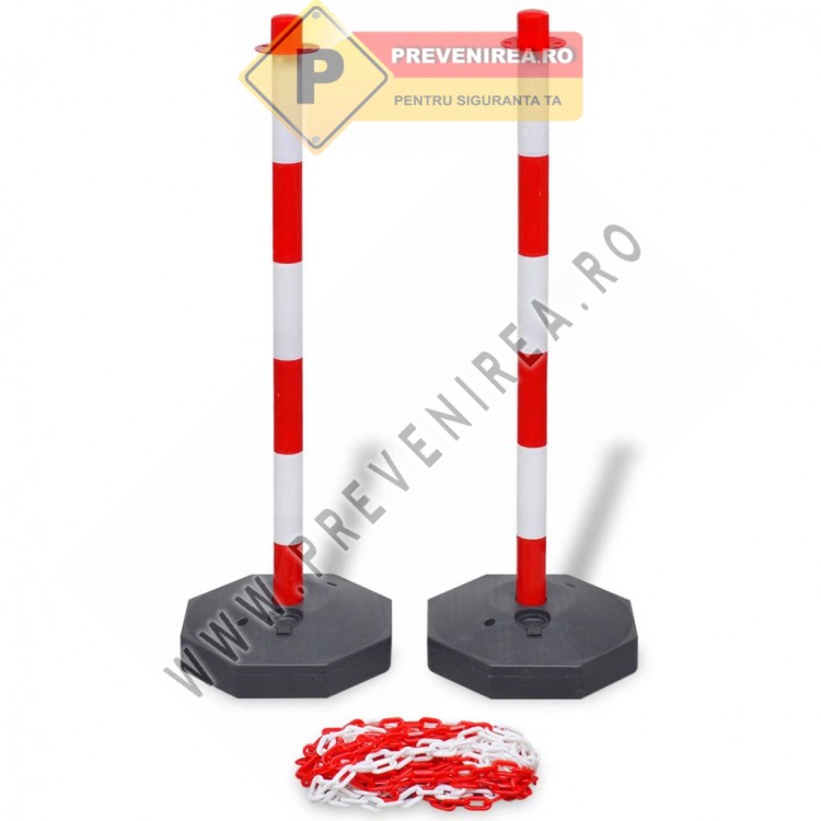 Caracteristici: Material stalp: plastic; Baza: triunghiulara umpluta cu beton pentru stabilitate marita; Culori: alb-rosu; Inaltime: 90 cm.